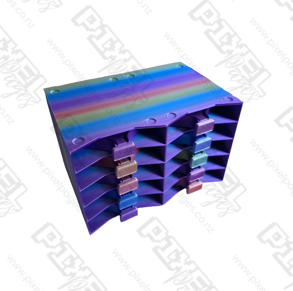 The 10 slot stack-able tray tower is the perfect organizational tool for your diamond painting trays. Made with 3D printing technology, this tower ensures easy access and storage for up to 10 trays at once and they are also stack-able so you can mix and match till your hearts content! Say goodbye to scattered trays and hello to a more efficient and streamlined diamond painting experience!